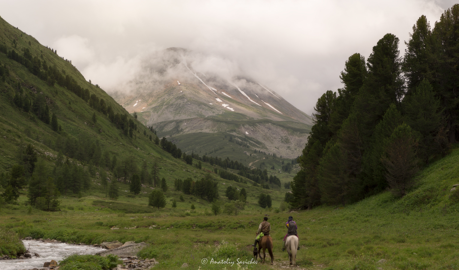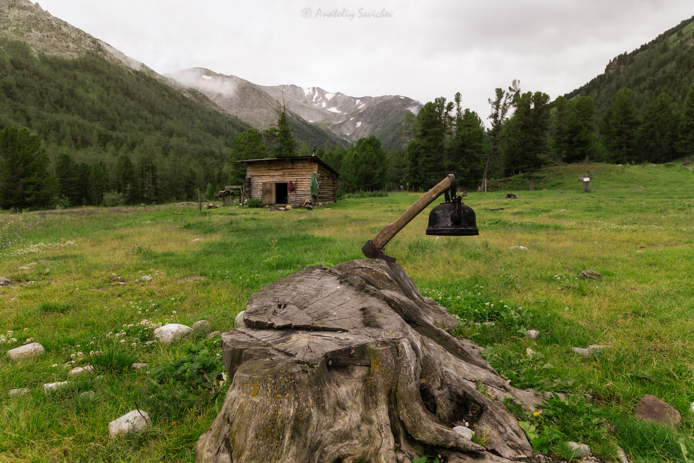 Breakfast in camp. We pack up and descend further. Passing through a small cedar forest, we collect fresh cones – in the evening, we will roast them over the fire. By lunchtime, we reach the final campsite, where a hot meal and a field bathhouse by the river await us.