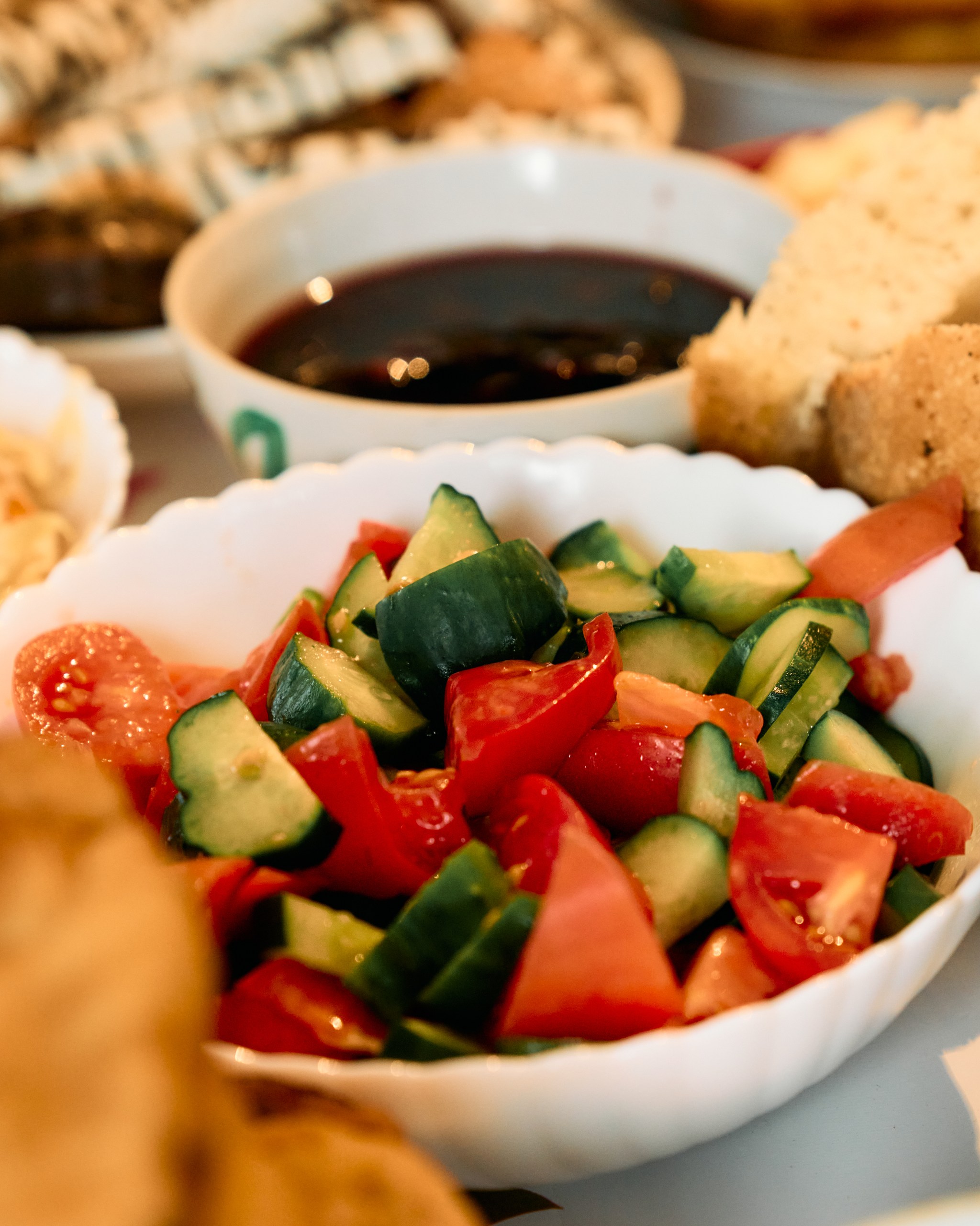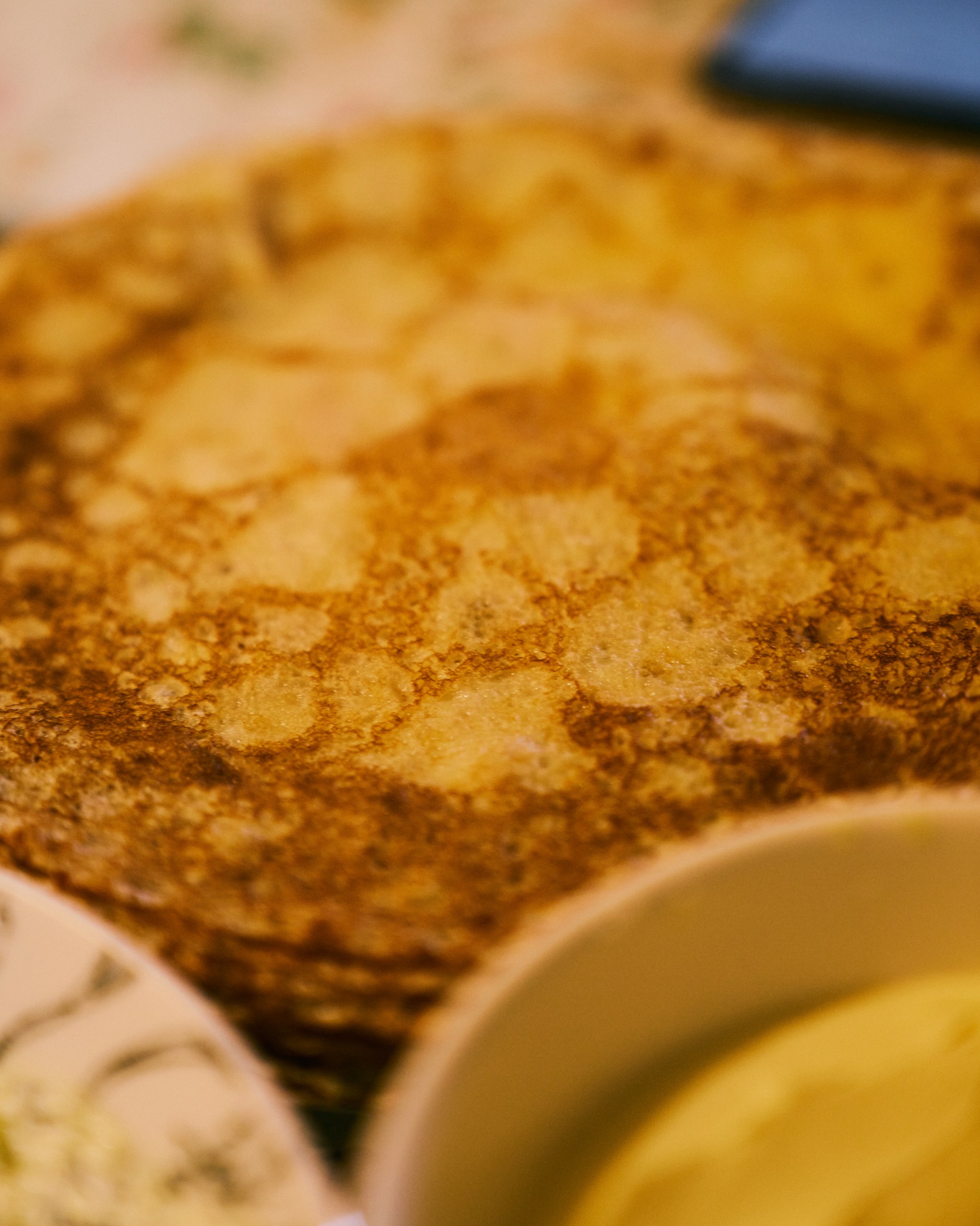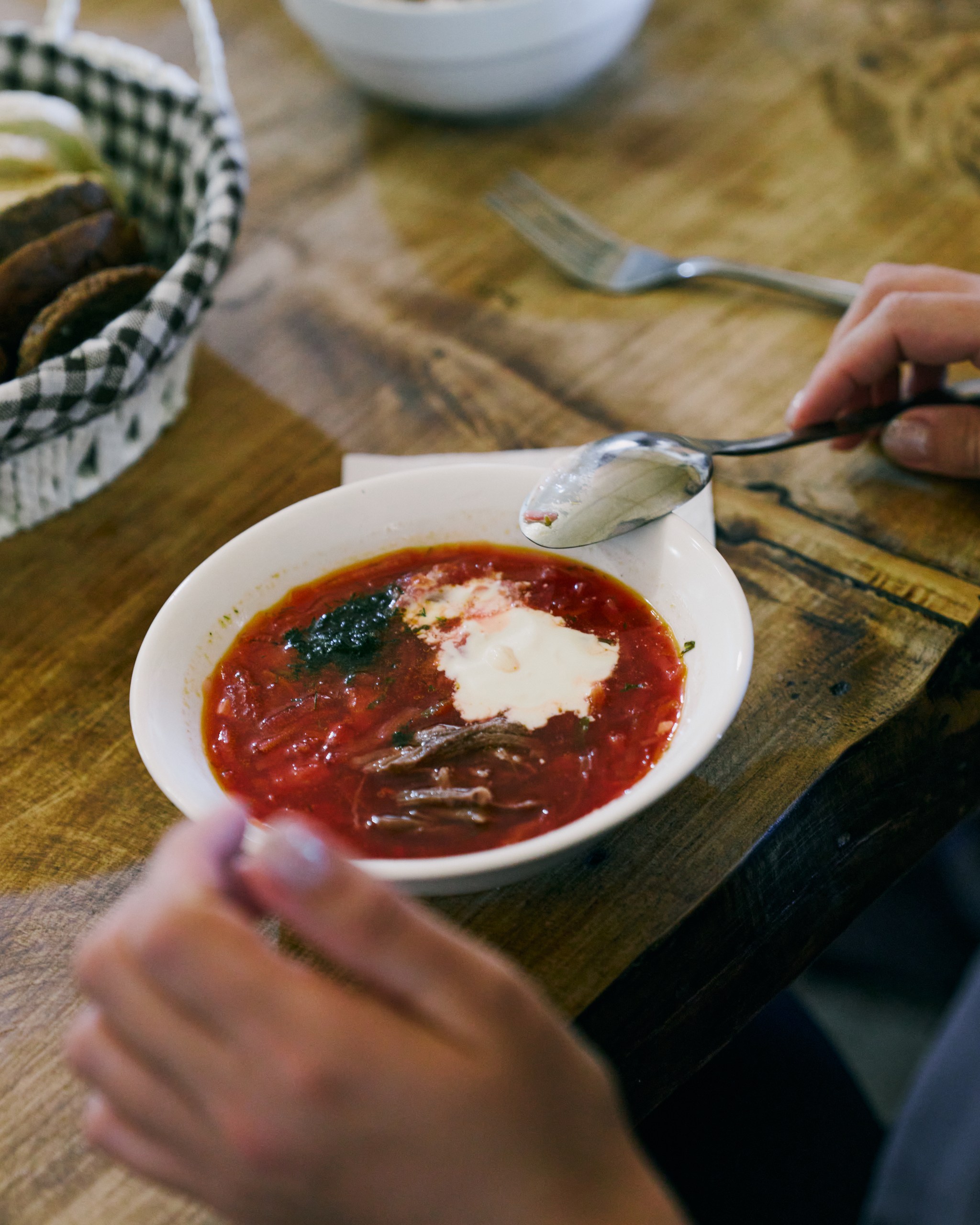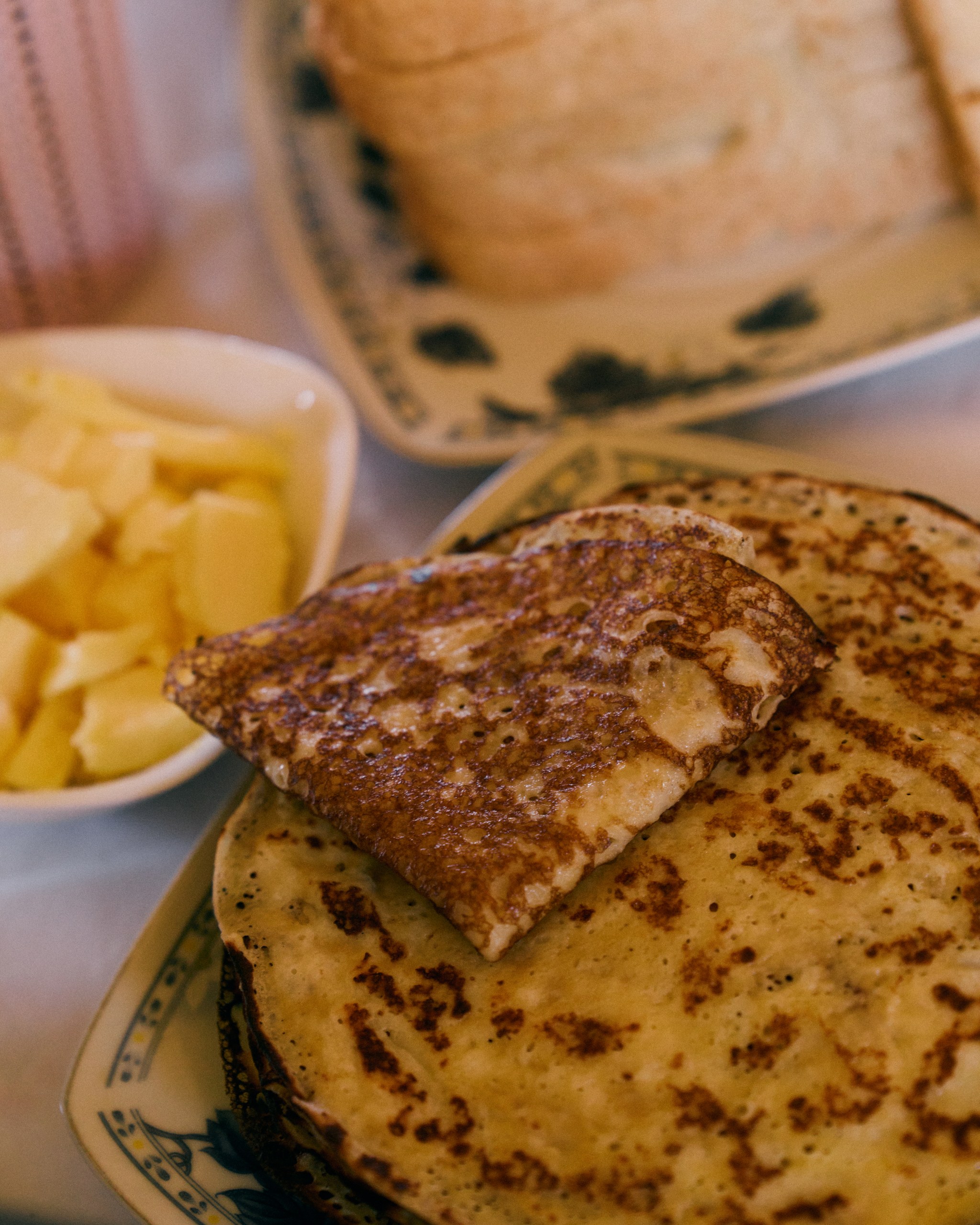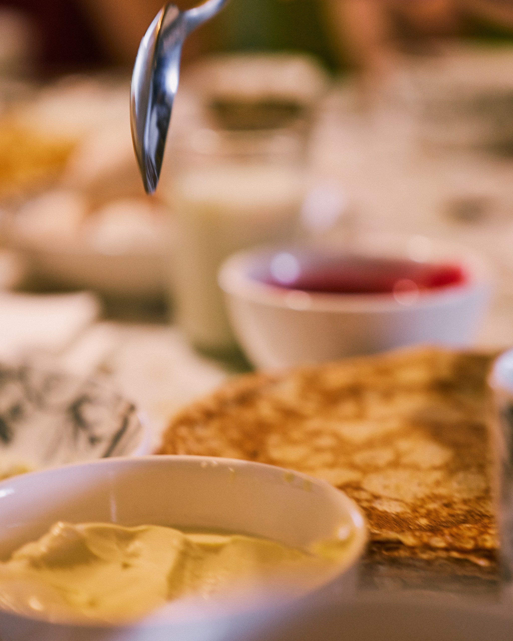 We wake up to the sounds of village life: tractors, cows, roosters. Breakfast is simple and hearty — porridge with fresh milk, butter, sour cream, pancakes, and other homemade treats.