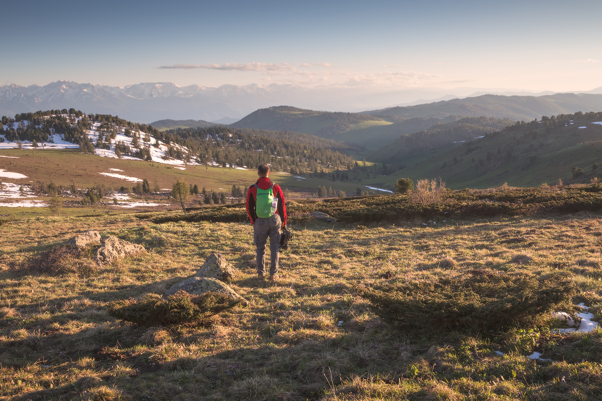 Driving along the winding roads of the Kalba Range, the high mountain scenery gradually changes into rolling hills and pine groves. By evening, we arrive in Ust-Kamenogorsk.
