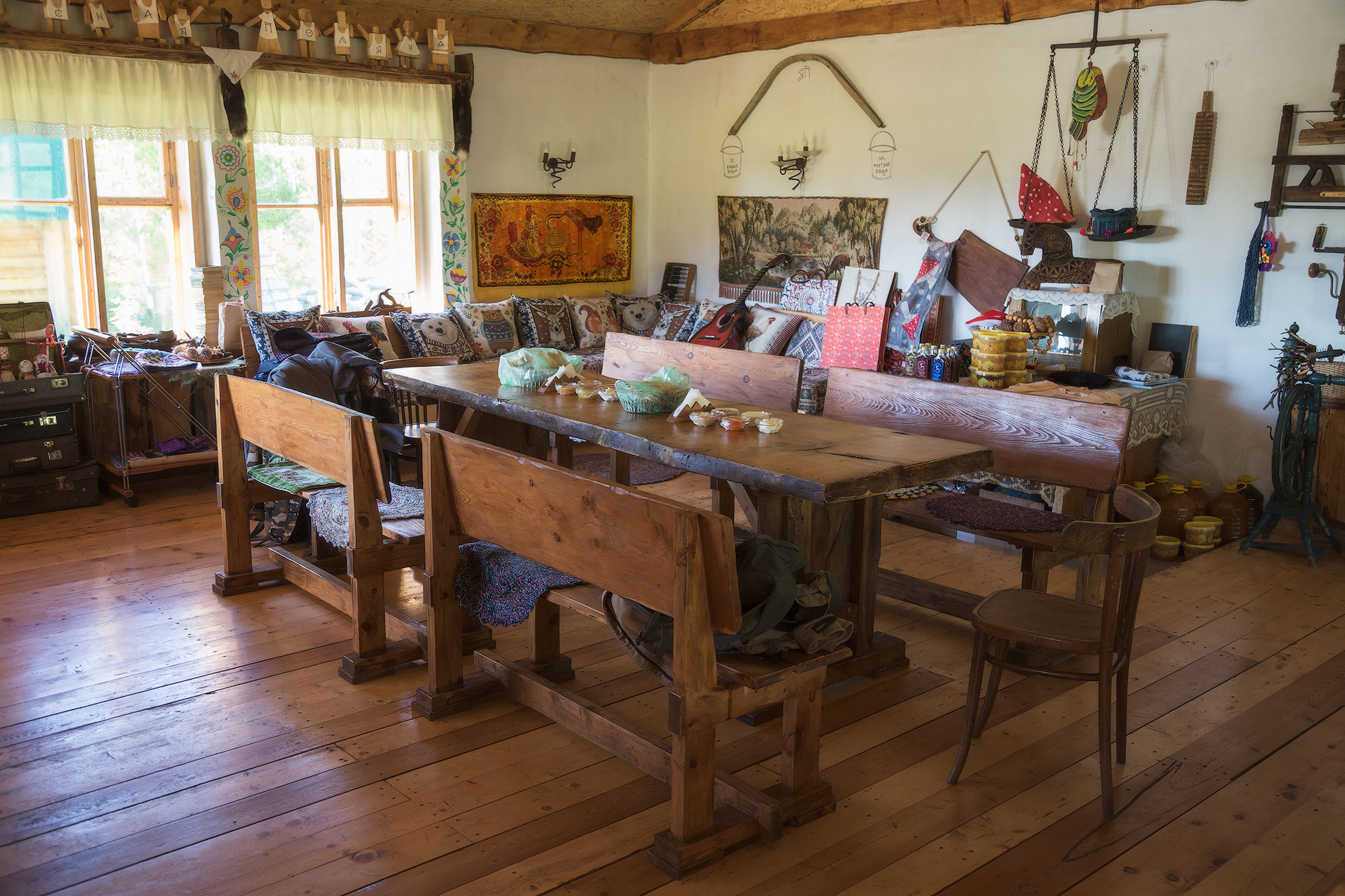 Hunters’ lodge: a simple two-room house with beds, tables, and chairs. Modest but clean, dry, and warm. Its main feature is the location — deep in the forest, surrounded by the scent of pine and cedar.