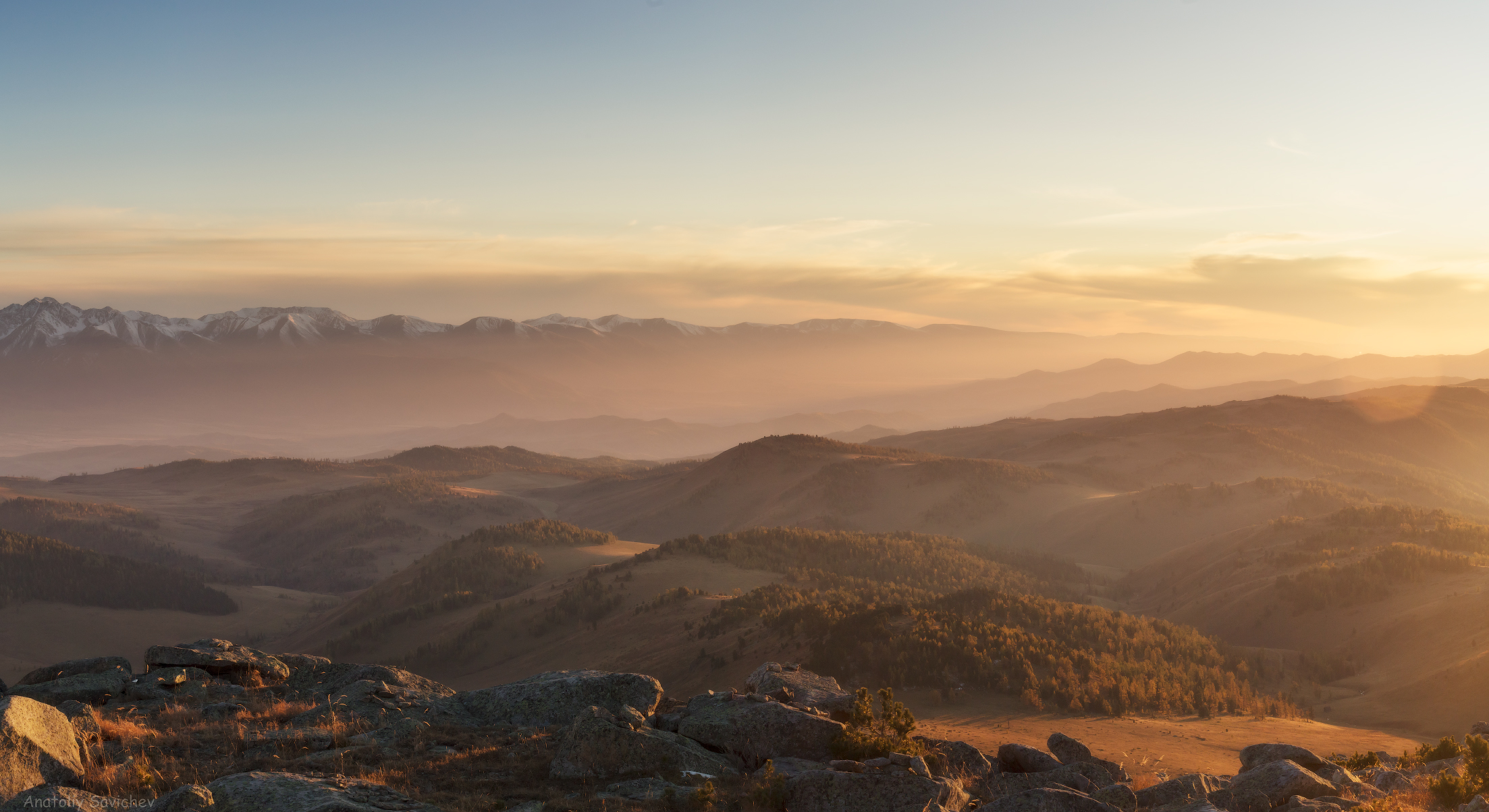 We ascend to the summit and enjoy a 360° panoramic view, including the Kazakh Altai and all three peaks of Mount Belukha. Here, we conduct a special sunset ritual — meeting the sun from every direction.