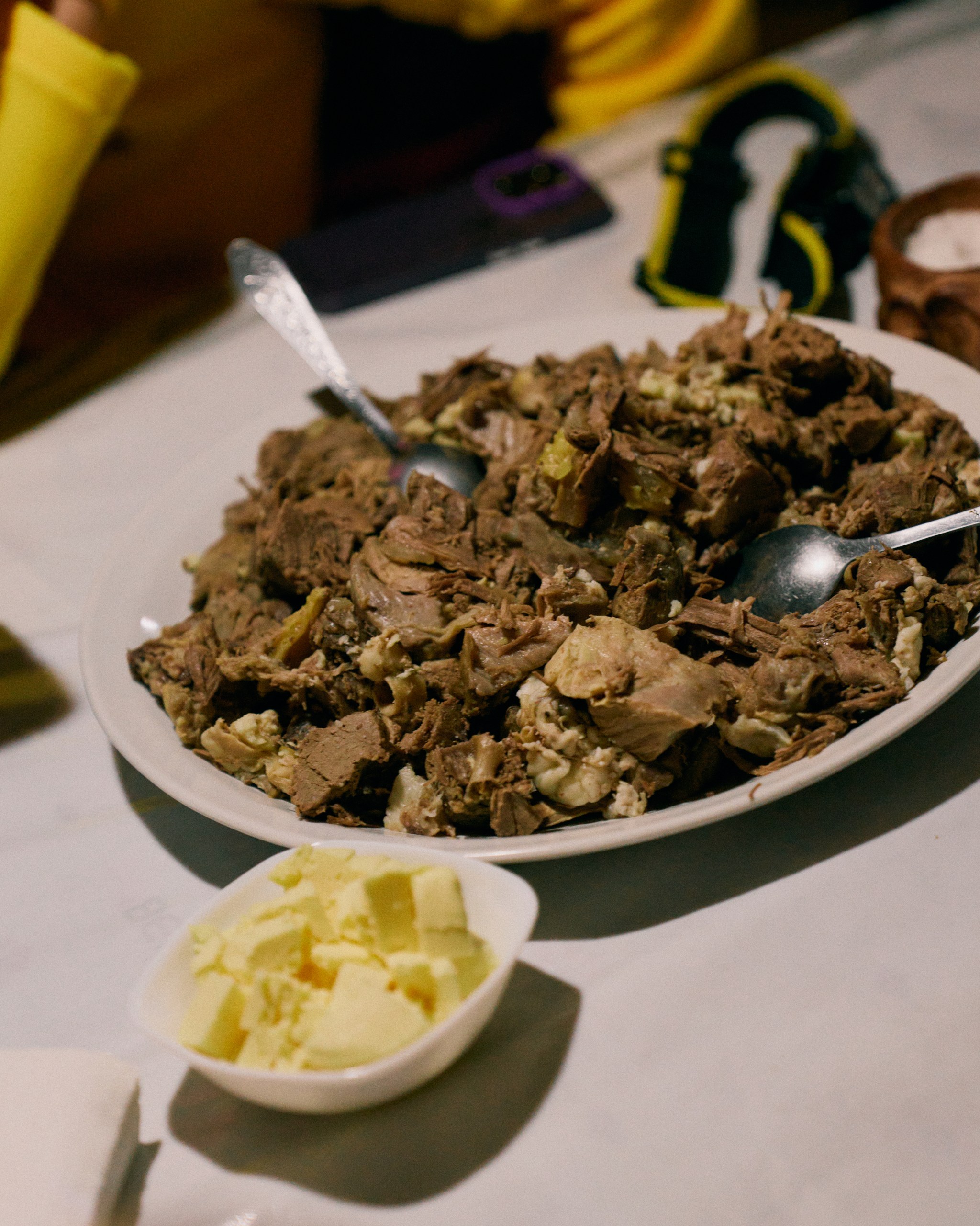 Traditional rural food: plenty of meat and fresh kumis.