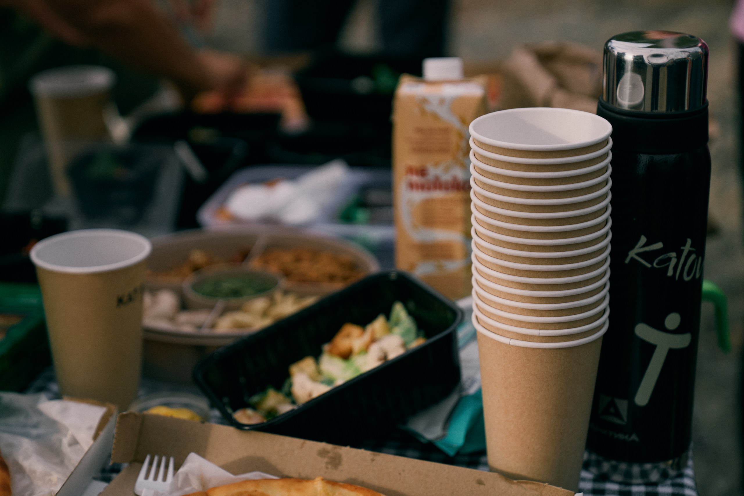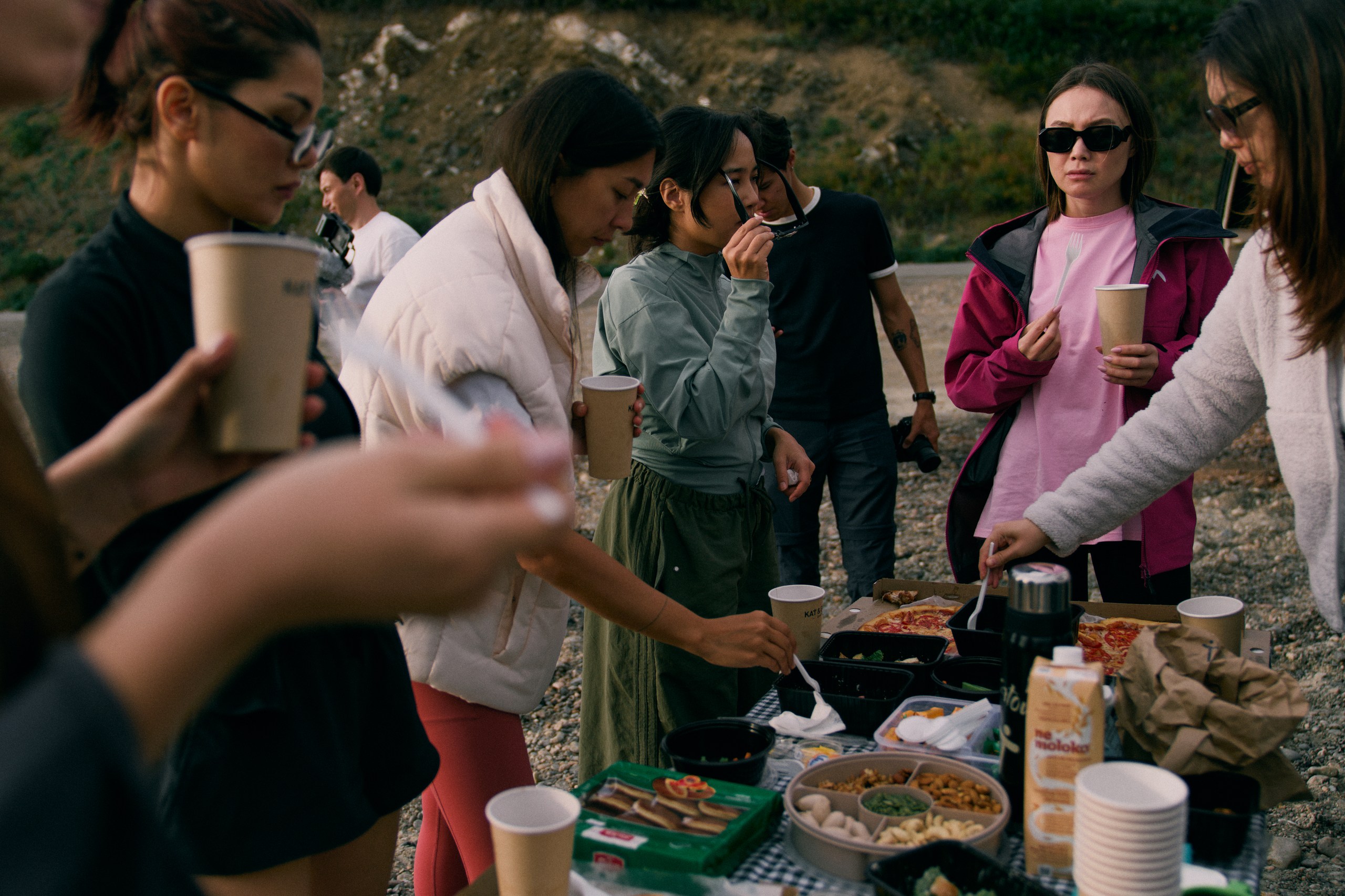 Picnic-style breakfast by the river.