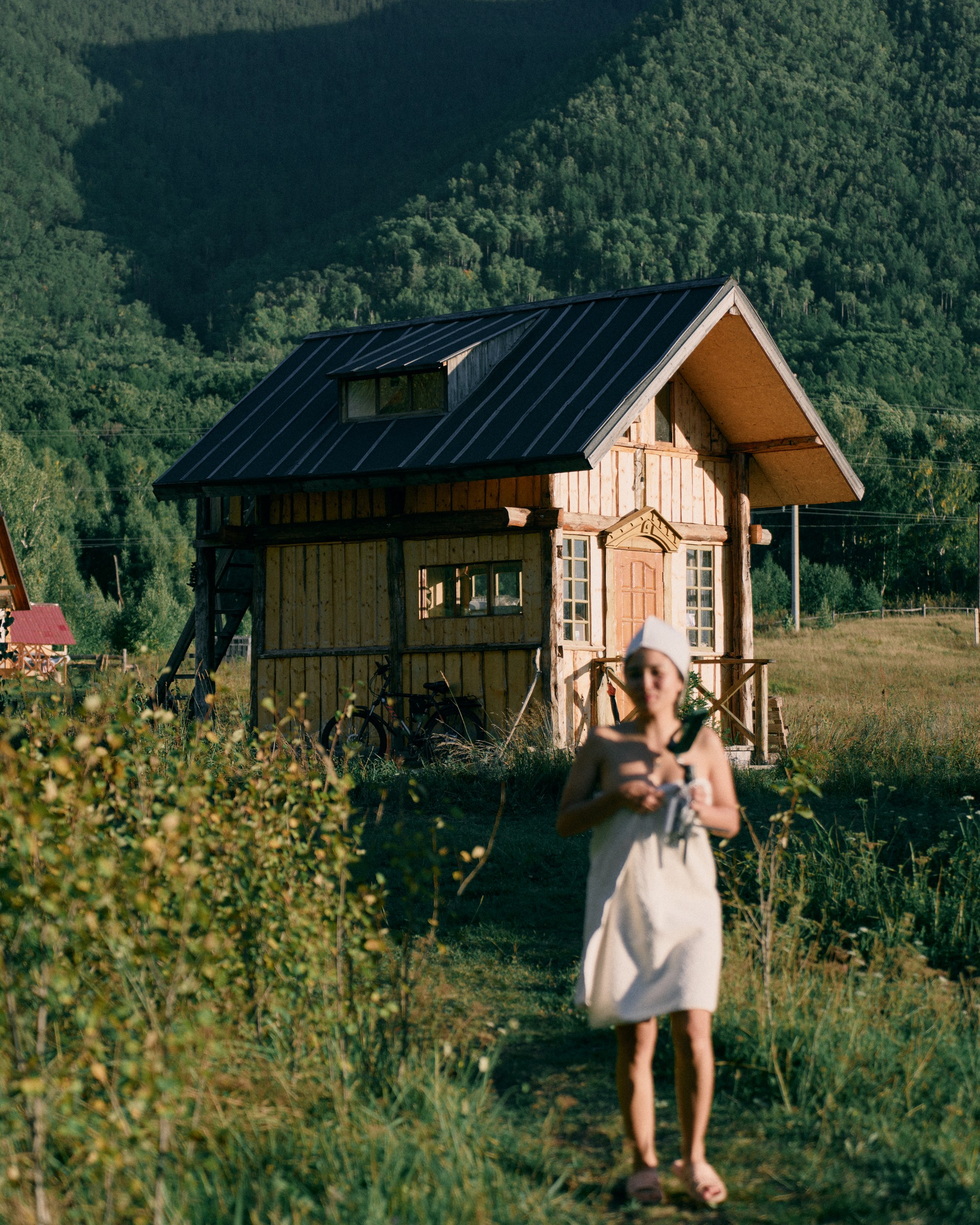 We continue our journey. The landscapes change, the mountains outside the window seem to “grow,” and the sky becomes so blue it feels unreal. Gradually, we sink into the embrace of Katon. Along the way, we make several short stops and by evening arrive at a guest house, where a village sauna and a delicious dinner cooked in a traditional Russian oven await us.