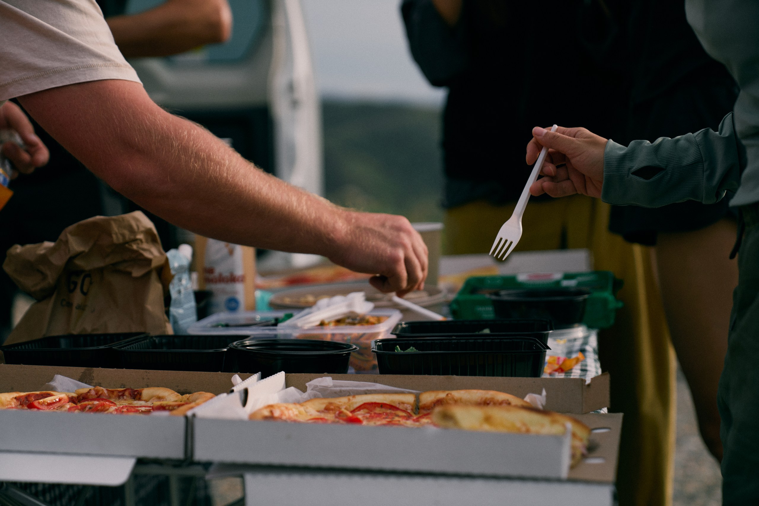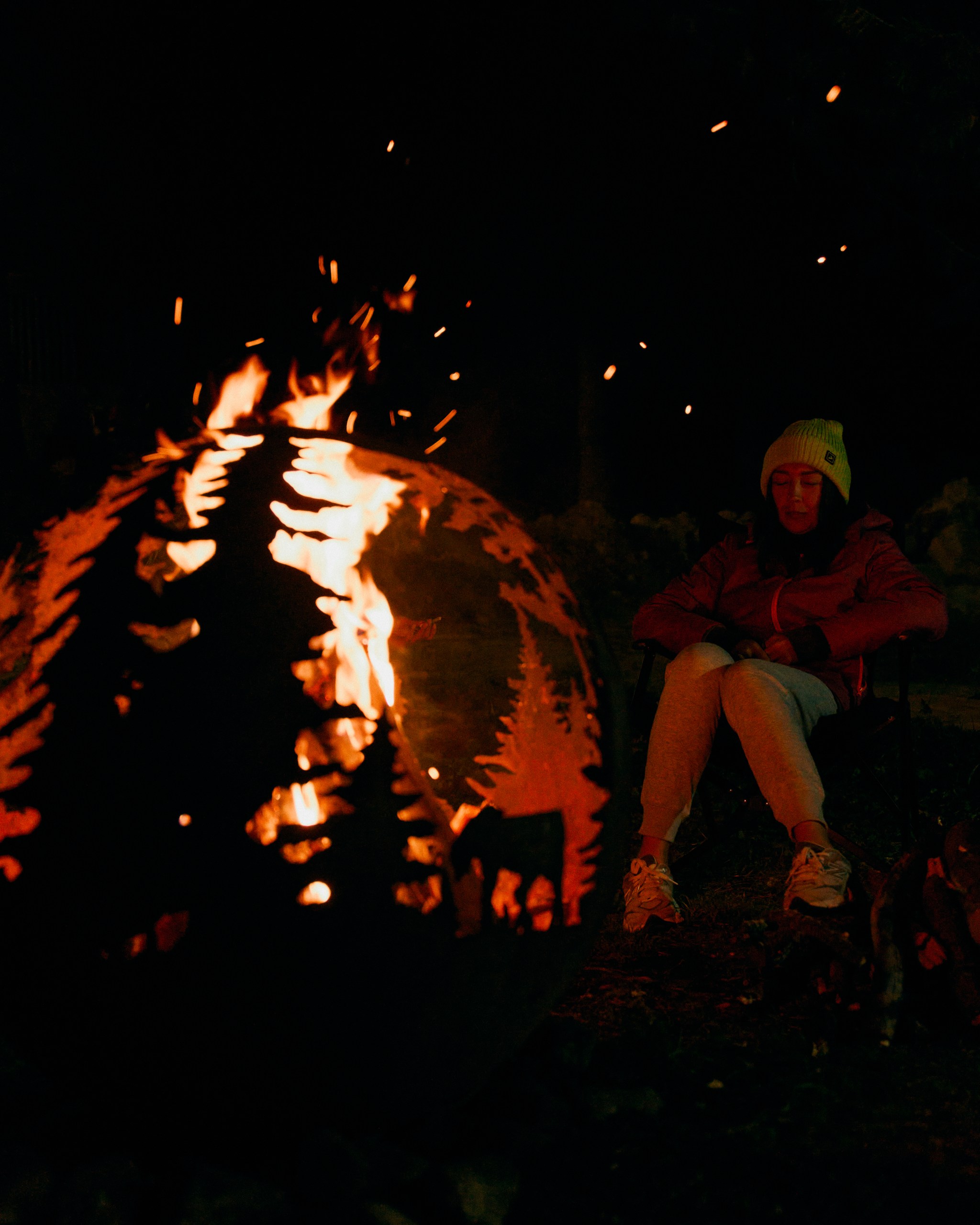 After the sauna — dinner and an evening campfire.